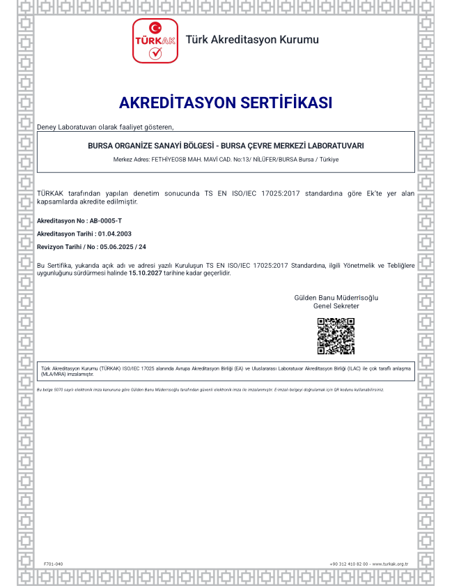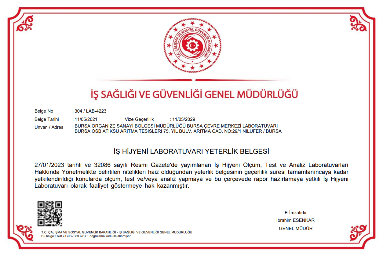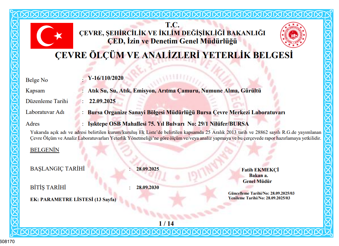 T.C. Çevre Şehircilik ve İklim Değişikliği Bakanlığı Yeterlilik Belgesi kapsamımız